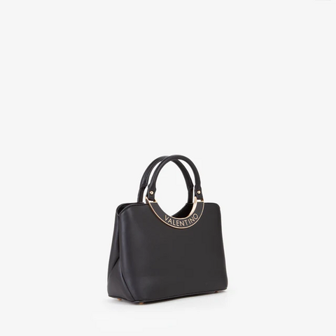 La borsa a mano small della linea WENDY firmata Valentino, e' una pratica borsa con manico corto in ecopelle liscia,con logo rialzato sulla placca smaltata posta sotto il manico,raffinata da amare di giorno o nelle occasioni piu importanti, portala con te dando un tocco cool al tuo look.Particolare nel tono nero valorizzera' tutti i tuoi look in questa stagione invernale L'interno è foderato in tessuto