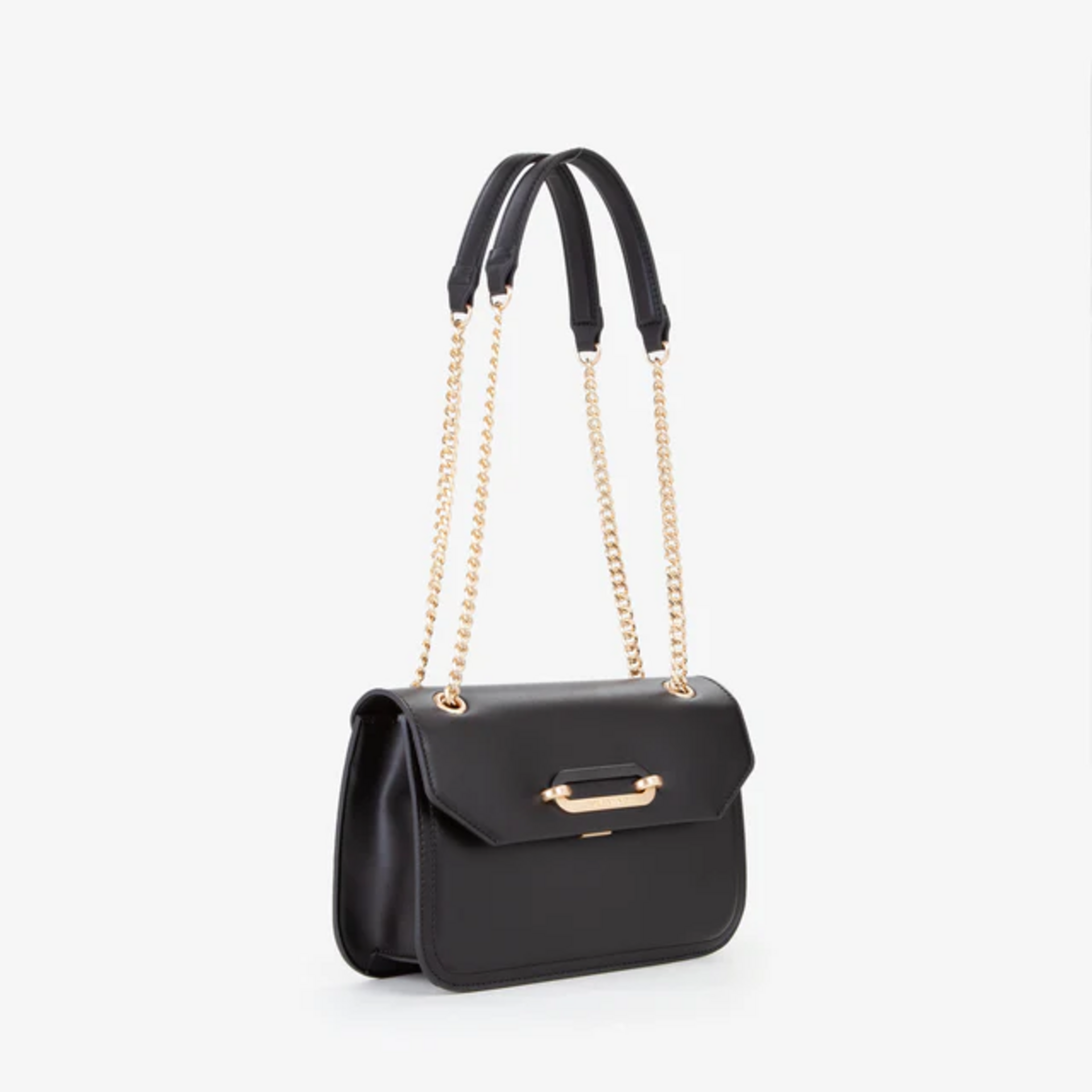 La borsa a tracolla della linea WHY RE firmata Valentino, e' una pratica tracolla con manico a catena in ecopelle liscia,con logo inciso su placca bicolore sul davanti,raffinata da amare di giorno o nelle occasioni piu importanti, portala con te dando un tocco cool al tuo look.Particolare nel tono nero e prugna , valorizzera' tutti i tuoi look in questa stagione invernale L'interno è foderato in tessuto