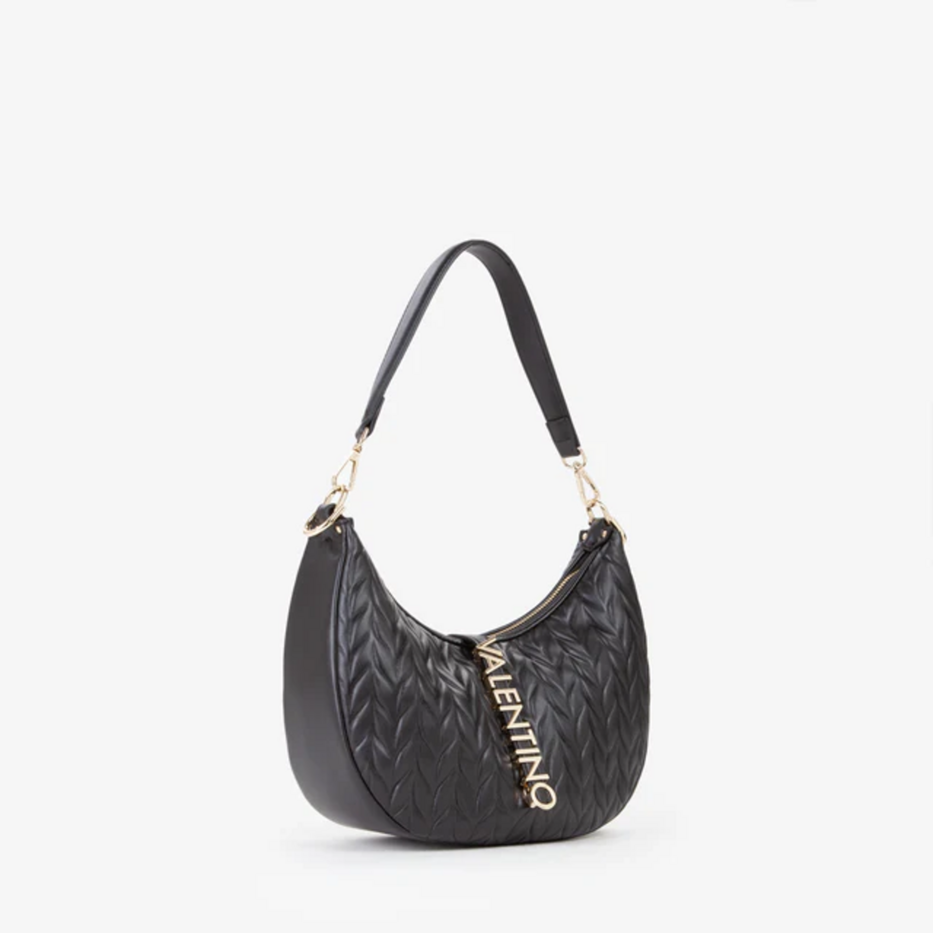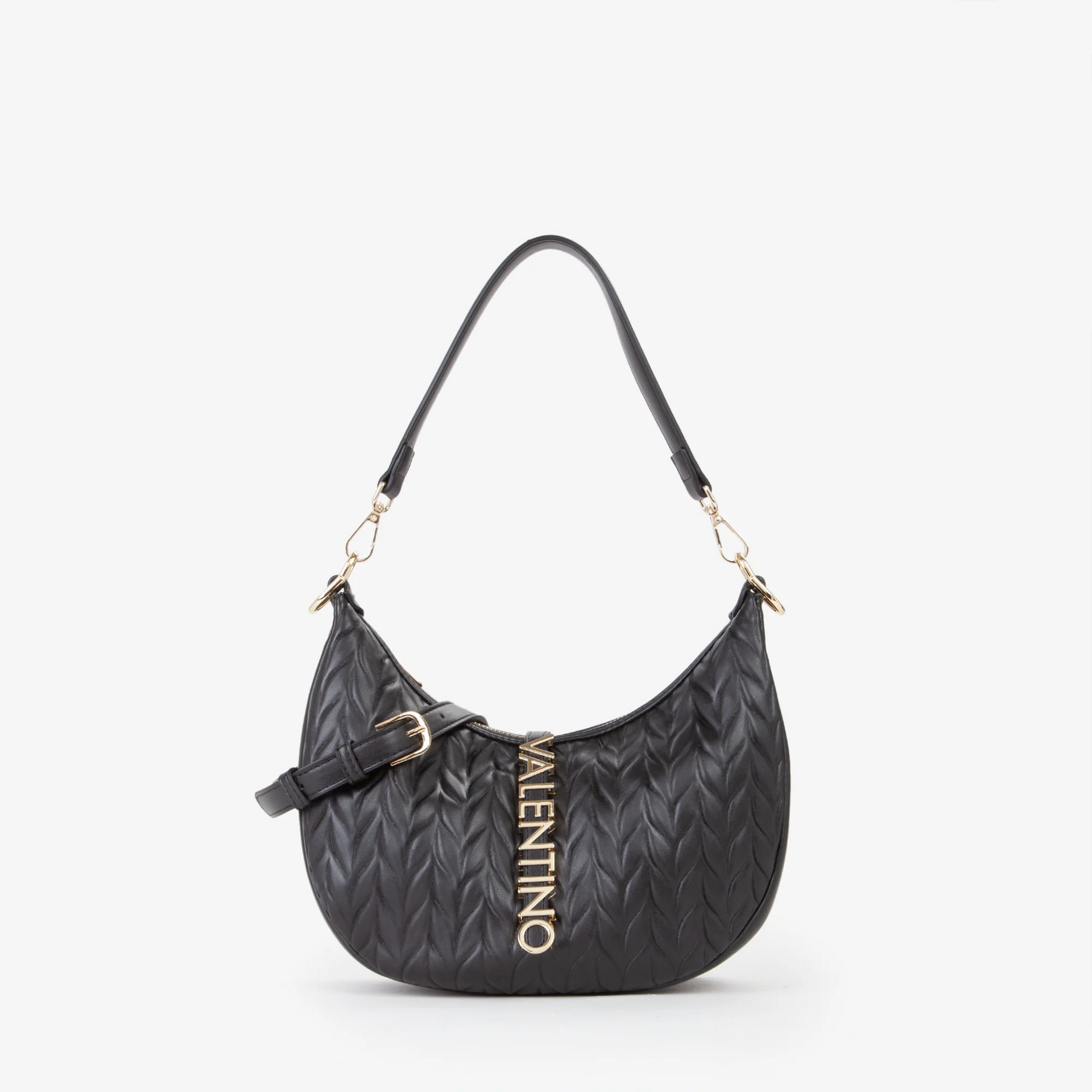 La borsa a tracolla della linea Fania Re che Valentino ti propone, e' una comoda borsa Hobo con logo in metallo, in ecopelle goffrata e riporto in tinta, e' un accessorio raffinato, portala con te dando un tocco cool al tuo look.Particolare nel colore del tono nero cipria tale da valorizzare tutti i tuoi look .