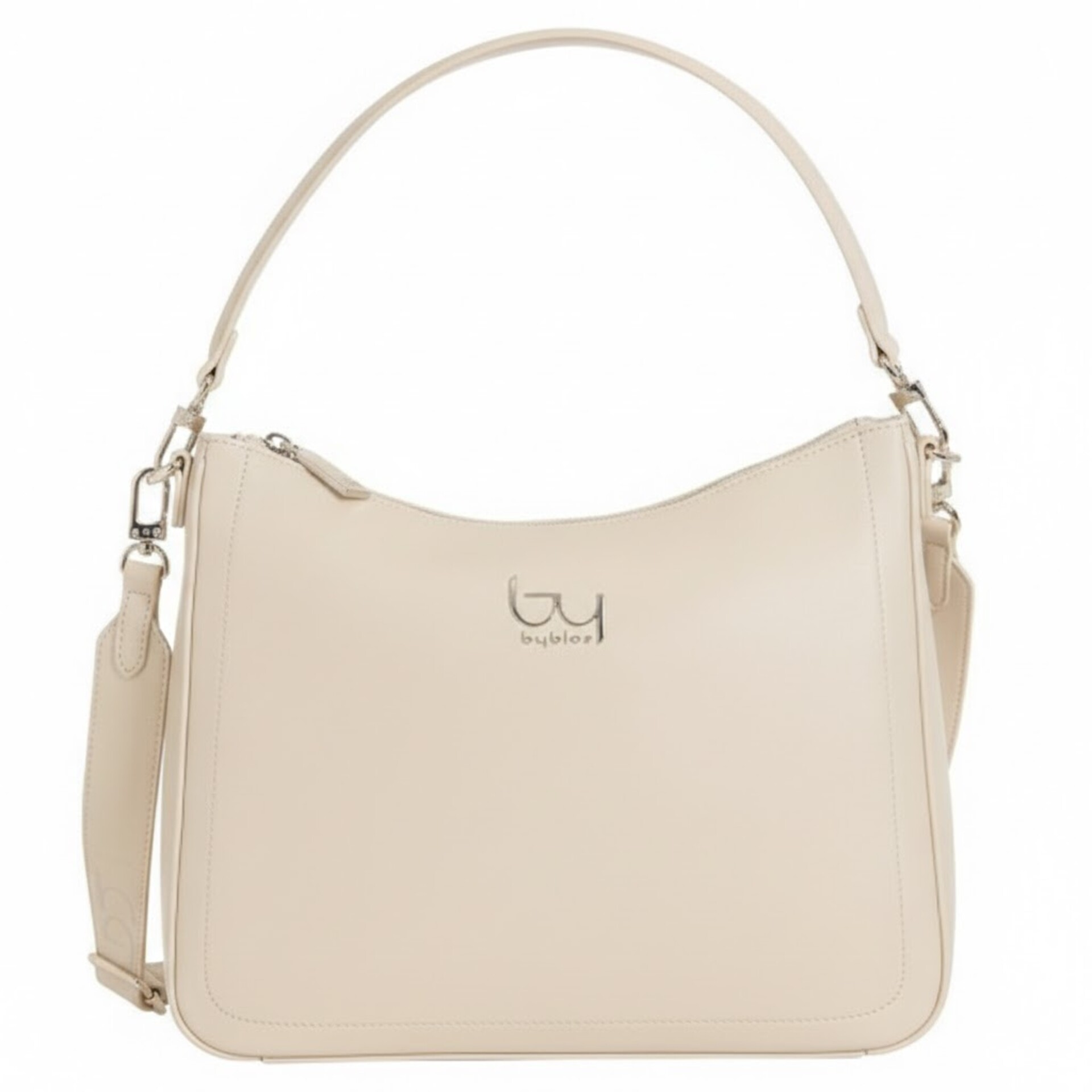 La borsa a Tracolla della linea JANE firmata BY BYBLOS, e' una elegante borsa a tracolla in ecopelle nappata ,con personalizzazione frontale in metallo.E' un accessorio raffinato da amare di giorno o nelle occasioni piu importanti, portala con te dando un tocco cool al tuo look.Particolare nei colori del tono Avorio e Tan tale da valorizzare tutti i tuoi look . L'interno è foderato in tessuto
