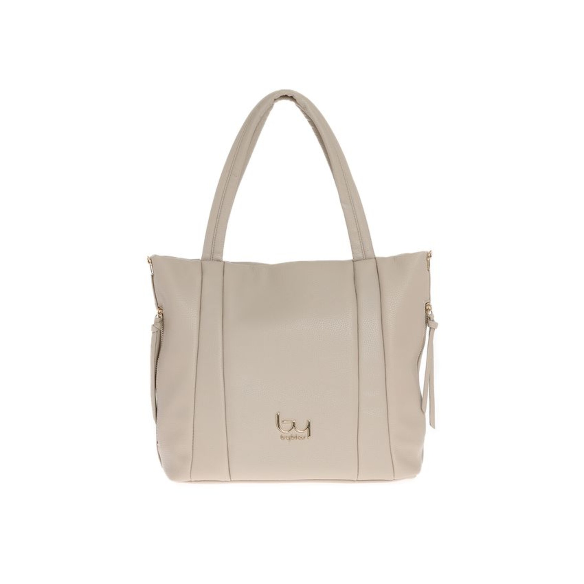 La borsa Shopper della linea LIBRA firmata BY BYBLOS, e' una elegante shopper in grana,con personalizzazione frontale in metallo.E' un accessorio raffinato da amare di giorno o nelle occasioni piu importanti, portala con te dando un tocco cool al tuo look.Particolare nei colori del tono Avorio e Tan tale da valorizzare tutti i tuoi look . L'interno è foderato in tessuto