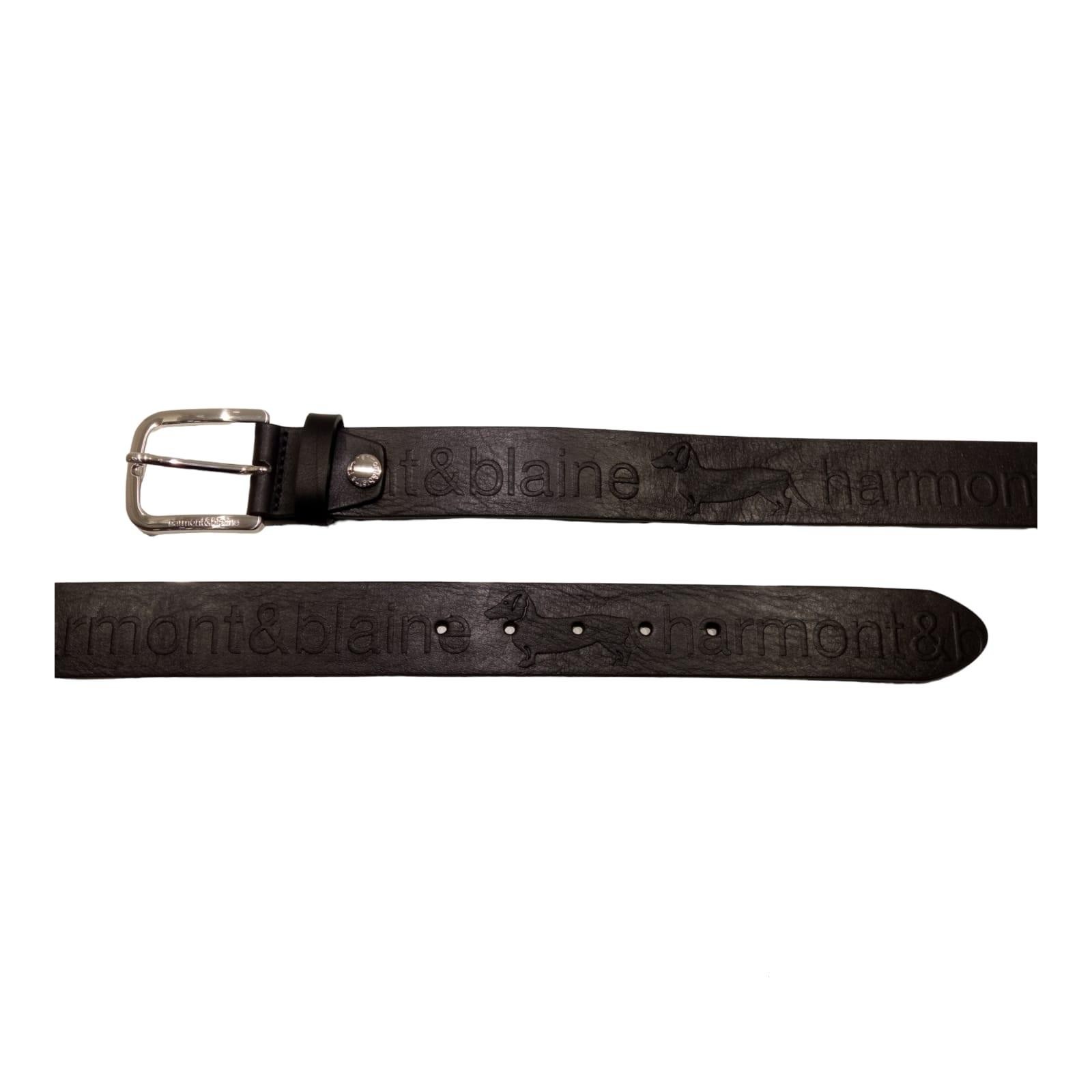 La cintura in pelle, firmata Harmont & Blaine e' una cintura in pelle con logo Bassotto all-over e fibbia metallica.La cintura e' facilmente accorciabile grazie alla fibia svitabile.La cintura e' prodotta in Italia