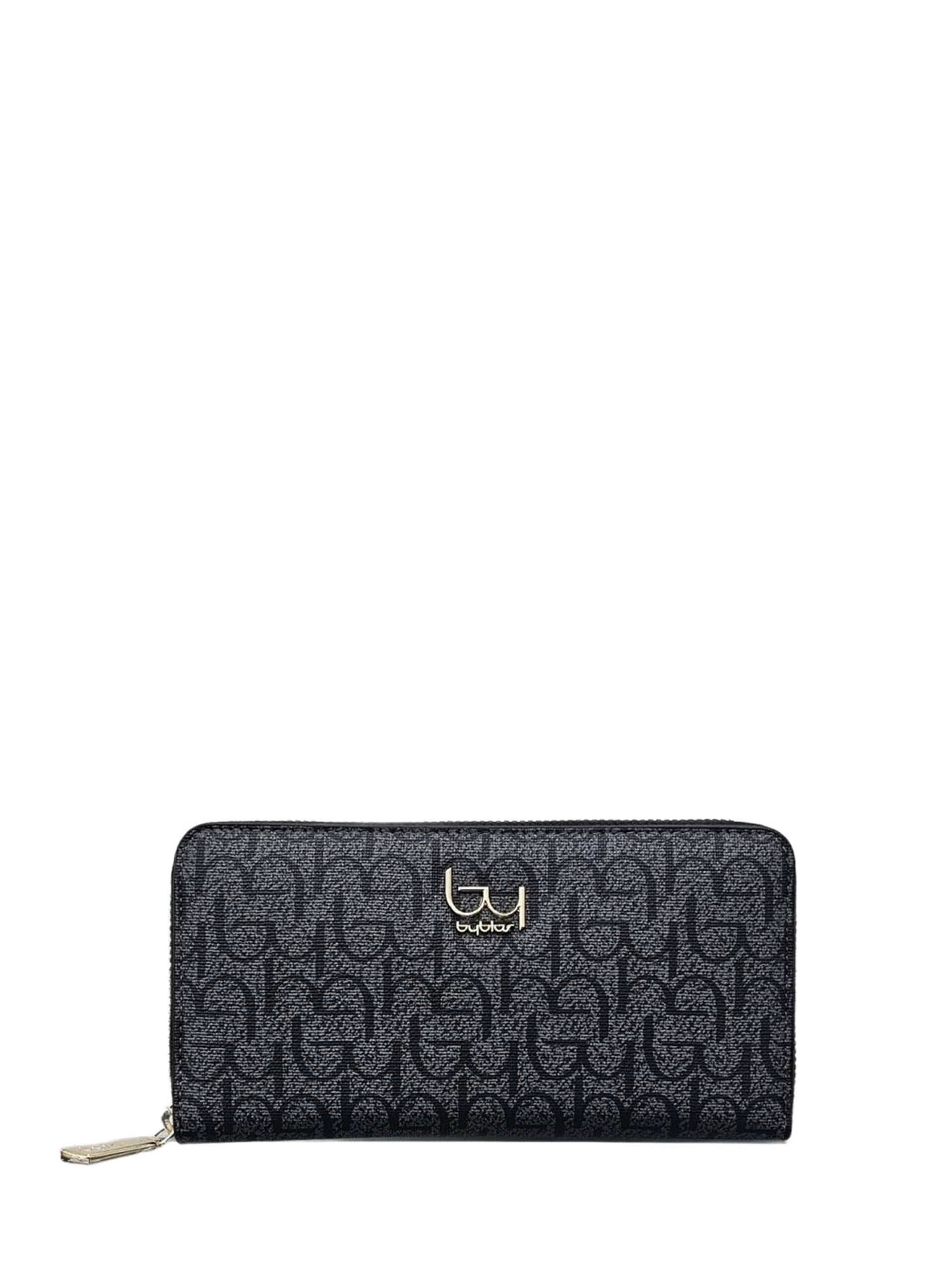 Il portafoglio della linea Notredame firmato By Byblos, e' un portafoglio in ecopelle stampata con zip e logo frontale in metallo a contrasto .Particolare nel colore del tono nero beige taupe tale da valorizzare tutti i tuoi look in questa stagione invernale L'interno è foderato in tessuto