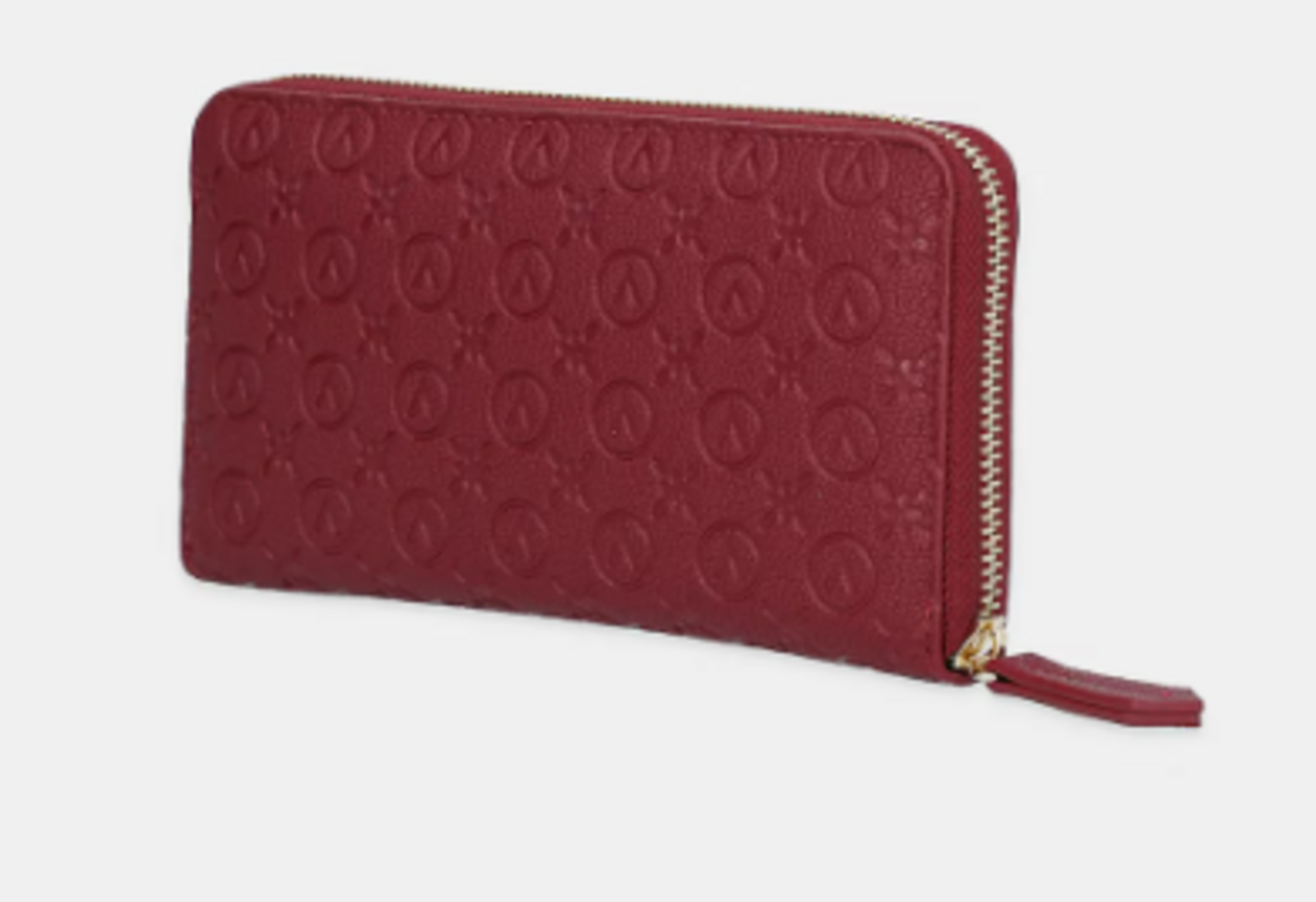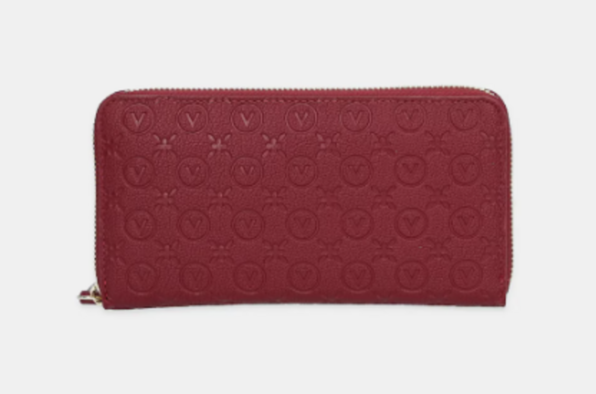 Il portafoglio della linea Samba Re firmato Valentino, e' un portafoglio con zip in elegante eco nappa con logo all-over Valentino .Disponibile nel colore Rosso Scuro Ecru . L'interno è foderato in tessuto