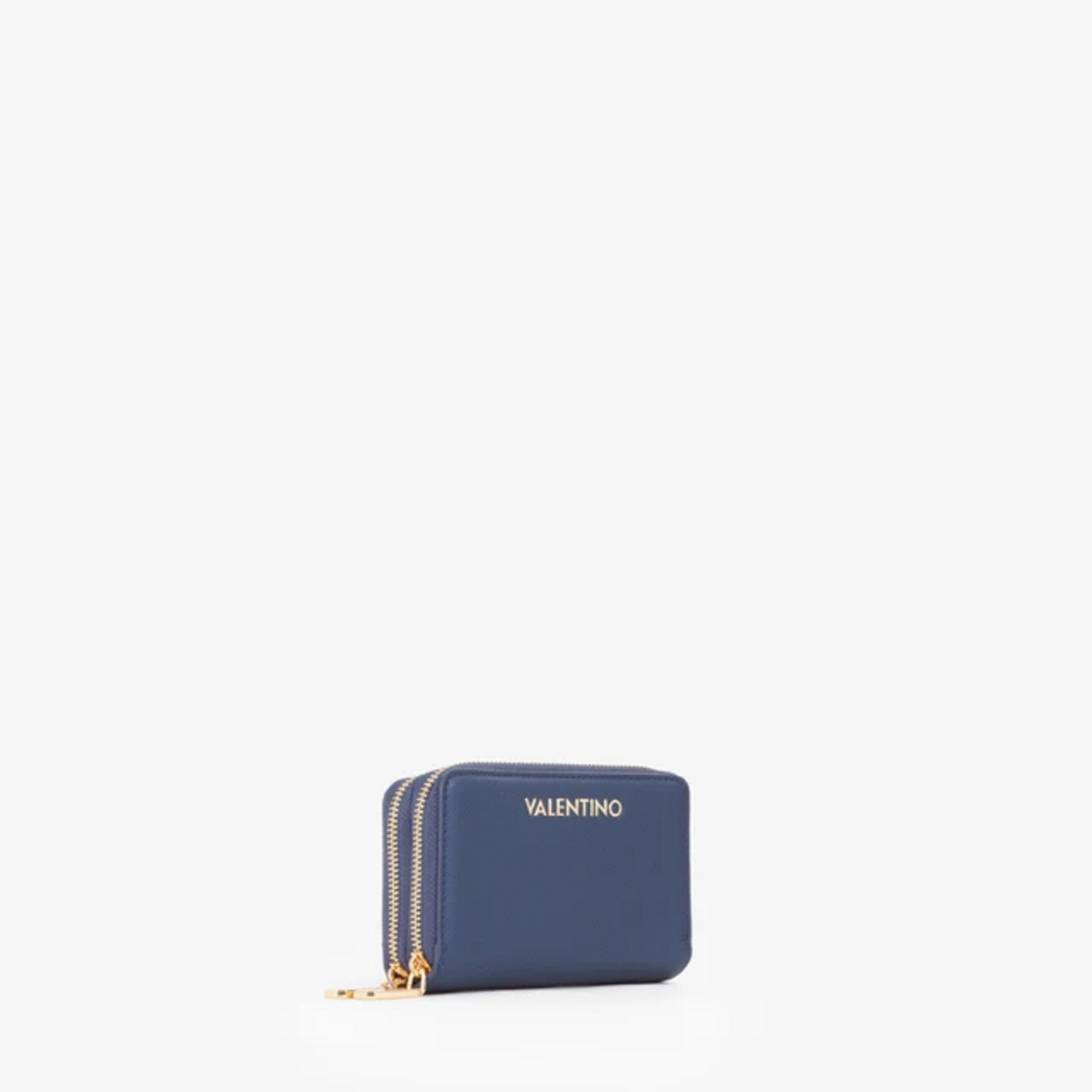 Il portafoglio della linea FAE RE firmato Valentino, e' un portafoglio in ecopelle bottalata con doppia zip e lettere metalliche sul davanti .Particolare nel tono Blu e Neno.Tale da valorizzare tutti i tuoi look in questa stagione invernale. L'interno è foderato in tessuto