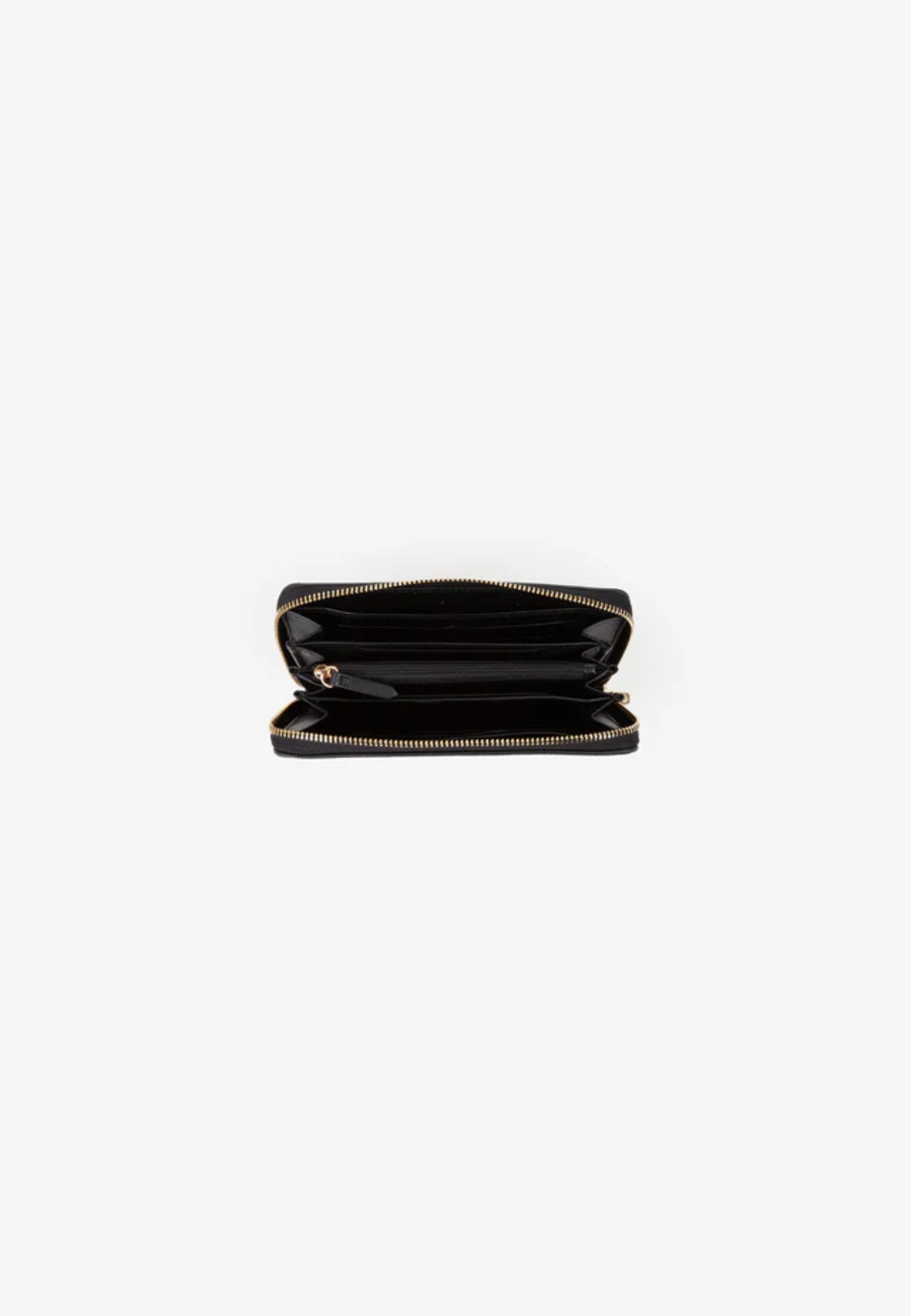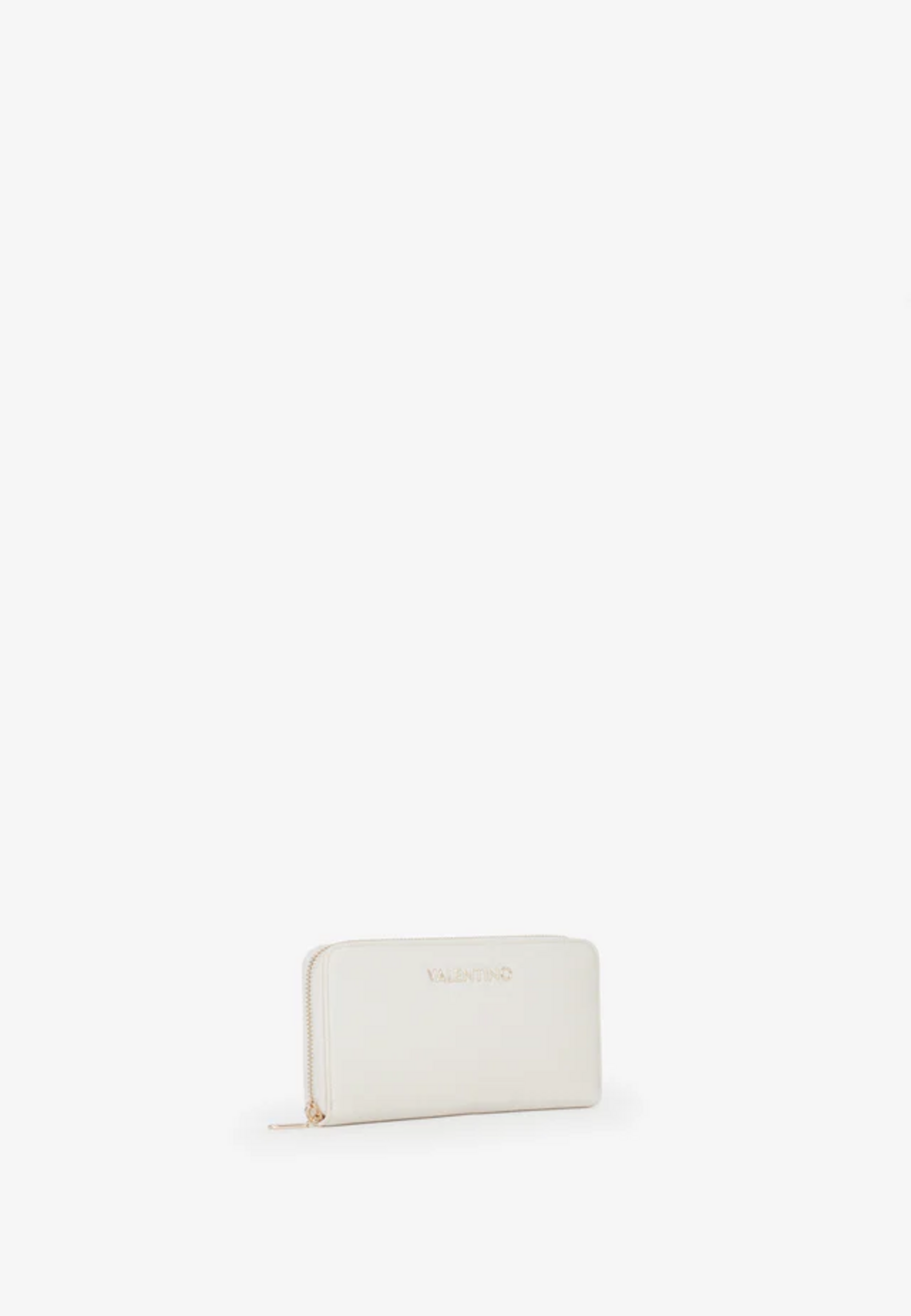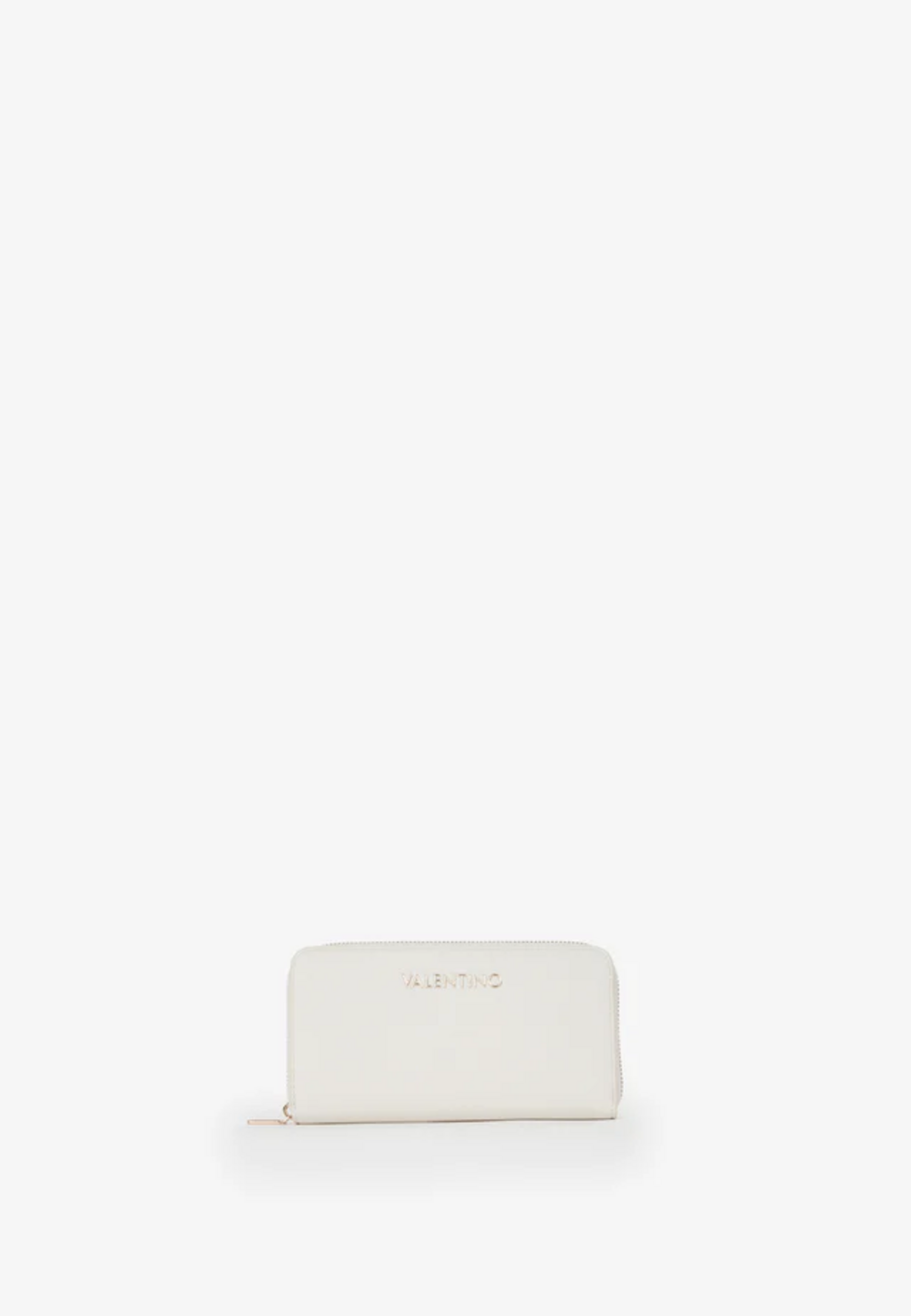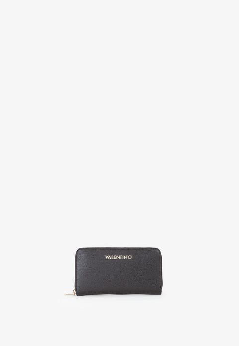 Il portafoglio della linea DORIS RE firmato Valentino, e' un portafoglio in materiale ecopelle in grana fine , con zip e macro logo frontale .Particolare nei colori del tono nero e ecru e cuoio da valorizzare tutti i tuoi look . L'interno è foderato in tessuto