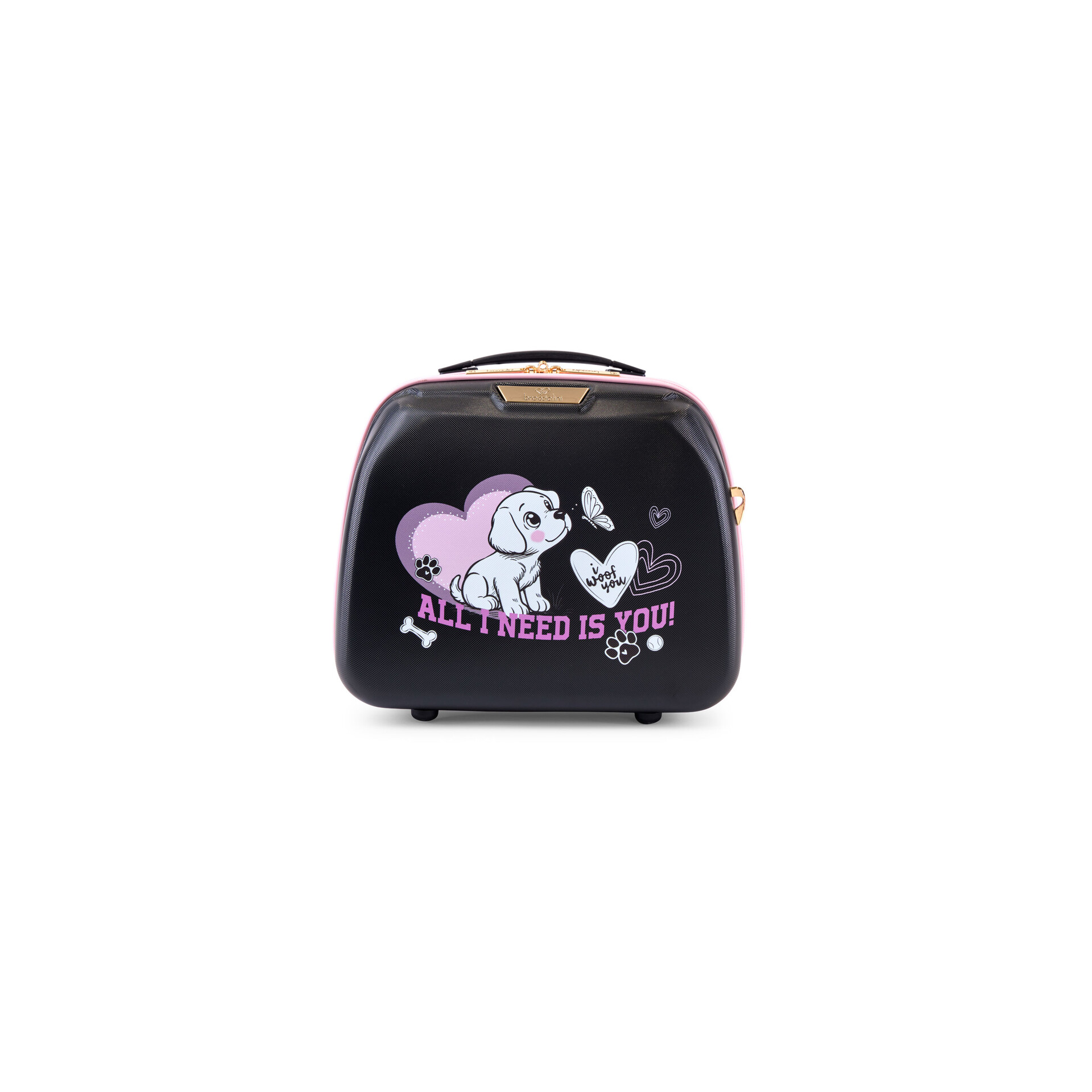 Il Beauty case della collezione PUPPIES firmato Braccialini che ti propone e' un beauty case in policarbonato unico e pratico in pieno stile italiano. Ispirato a una dolcissima stampa che raffigura un cucciolo tra cuori e scritte romantiche, per raccontare una tenera storia d’amore a ogni viaggio. Questo beauty case è l'accessorio per trasportare con stile e praticità i tuoi accessori da viaggio. Dotato di chiusura a zip, comoda maniglia superiore e tasche interne, il beauty, ti permetterà di viaggiare con i tuoi effetti personali senza problemi, avendoli comodamente a portata di mano. Non solo pratico ma anche facilmente trasportabile grazie alla sua fascia elastica posizionata sul retro del beauty case, con la quale potrai fissarlo saldamente al manico del tuo trolley. Il beauty include una tracolla regolabile che ne consente il trasporto a spalla. Un accessorio indispensabile per chi non rinuncia all'eleganza nemmeno in viaggio.