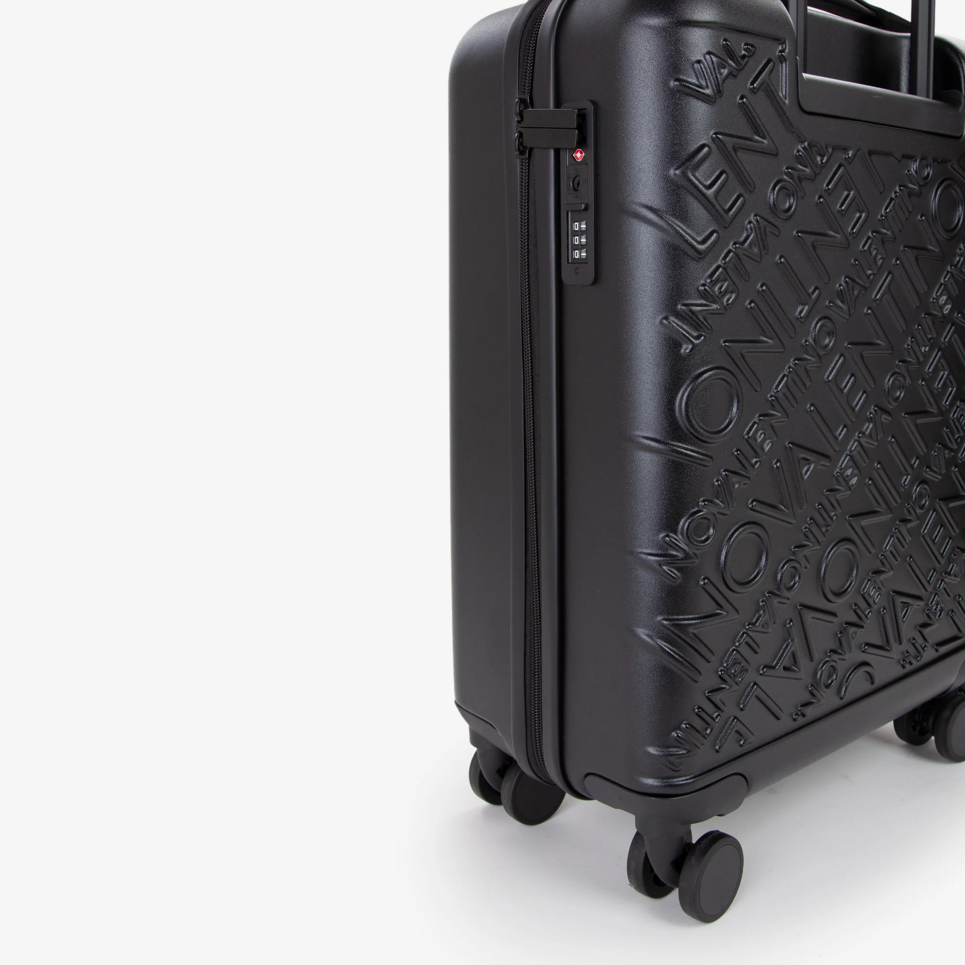Il trolley Cabina colore Nero della collezione Mars firmato Valentino e' una collezione di trolley rigidi, ultraleggeri, capienti e funzionali.Il materiale, ABS 100%, nonostante la leggerezza, è altamente resistente agli urti. Sono adatti ai viaggi intercontinentali grazie alla chiusura a combinazione laterale con TSA. Le 4 ruote gemellari e pivotanti, progettate per facilitare il trasporto della valigia, rendono pratico ogni spostamento, sia esso in aereo, in macchina o in treno. Il carrello con push button rende fruibile il traino. Tutti gli interni sono completamente organizzati con divisorio e ferma abiti, garantendo la massima capienza e praticità.